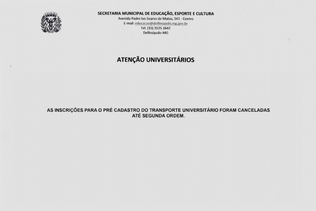As inscrições para o Pré Cadastro do Transporte Universitário foram canceladas até segunda ordem.