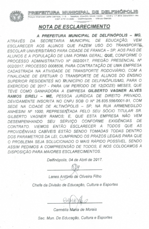 COMUNICADO DA SECRETARIA MUNICIPAL DE EDUCAÇÃO, CULTURA E ESPORTE SOBRE O TRANSPORTE ESCOLAR QUE FAZ A LINHA DE FRANCA – SP.